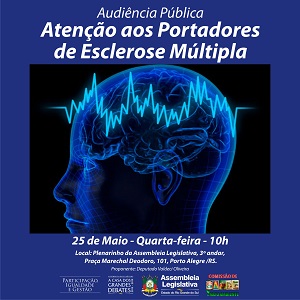 A Comissão de Saúde e Meio Ambiente da Assembleia Legislativa realiza, nesta quarta (25), uma audiência pública que vai debater as políticas públicas sobre a esclerose múltipla. A atividade acontece às 10h, no Plenarinho do Parlamento Gaúcho, em Porto Alegre. De acordo com o deputado Valdeci Oliveira (PT), proponente da iniciativa, a realização do debate foi solicitada a ele pela Associação dos Portadores de Esclerose Múltipla de Santa Maria (APEMSMAR). “O objetivo é ampliar a discussão sobre uma doença que merece bem mais atenção, informações e esclarecimentos”, explicou.