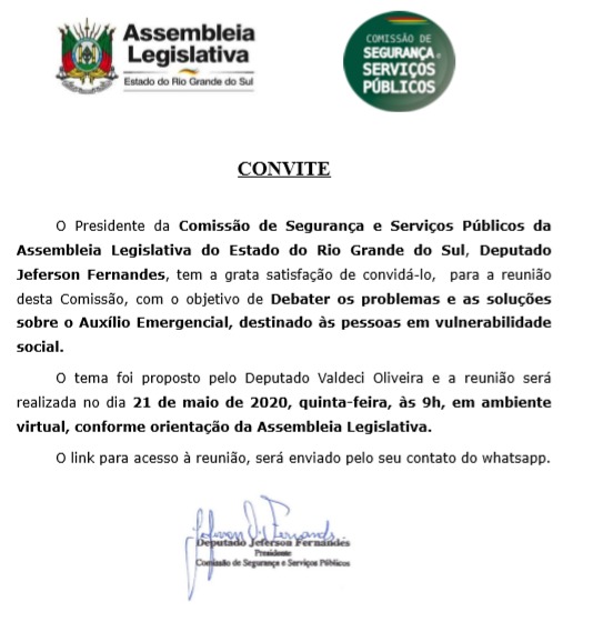 Os problemas enfrentados pela população, principalmente aquela em situação de vulnerabilidade social, para acessar e receber a ajuda emergencial de R$ 600,00 mensais estarão no centro do debate da Comissão de Segurança e Serviços Públicos da Assembleia Legislativa. A reunião acontecerá na próxima quinta-feira (21), às 9h, em ambiente virtual. Além dos deputados que integram a Comissão, estão sendo convidados a participar das discussões representantes da Caixa RS, a secretária estadual do Trabalho e Assistência Social Regina Becker, Enrico Rodrigues de Freitas, procurador do Ministério Público Federal no RS, e Paola Carvalho, diretora de Relações Institucionais e Internacionais da Rede Brasileira de Renda Básica (RBRB).