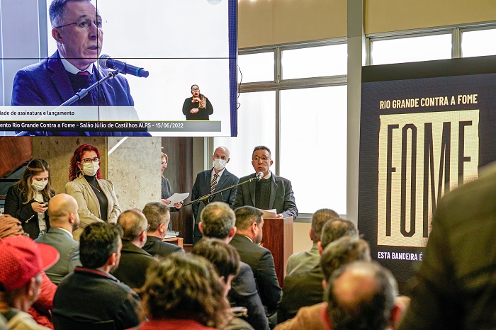 Uma mobilização coletiva foi lançada no final da manhã desta quarta-feira (15) no Salão Júlio de Castilhos da AL. O movimento Rio Grande contra a Fome será uma ação de parceria entre poderes de estado, instituições e entidades unidos pelo mesmo objetivo: combater a fome e a insegurança alimentar no Rio Grande do Sul. O evento reuniu autoridades, lideranças políticas e comunitárias, representantes de entidades da sociedade civil e de movimentos sociais ligados à causa.