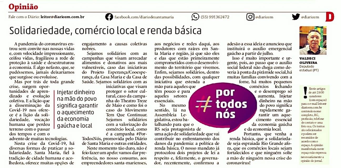 Opinião: Solidariedade, Comércio local e Renda Básica