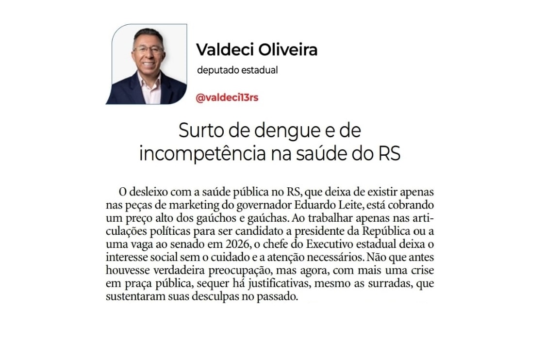 Artigo – Surto de Dengue e de Incompetência na Saúde do RS