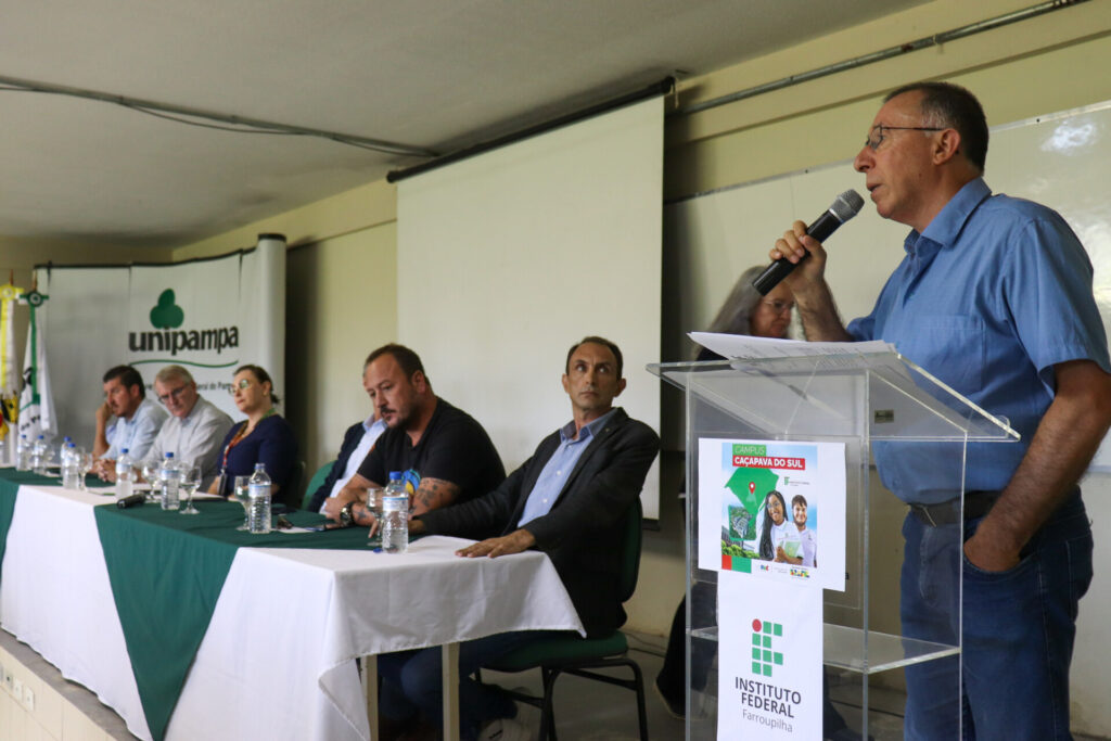 A segunda-feira (20/01) foi histórica para Caçapava do Sul, Lavras do Sul e Santana da Boa Vista, na Região da Campanha do RS. Em solenidade realizada no auditório do Unipampa, em Caçapava, aconteceu a assinatura das portarias de começo das obras do campus do Instituto Federal Farroupilha (IFFar) no município. As obras necessárias para erguer o campus local – que ficará situado ao lado da Unipampa – representarão um investimento de aproximadamente de R$ 15 milhões do governo federal e contemplam a construção de prédios de sala de aula e administrativo, ginásio, refeitório e guarita. Ao lado da reitora Nidia Heringer, dos prefeitos e lideranças dos três municípios e do vereador caçapavano Giordano Borba, o deputado estadual Valdeci Oliveira participou da cerimônia na condição de representante do Parlamento gaúcho. Na Assembleia Legislativa, Valdeci liderou a mobilização em defesa da expansão dos institutos federais no RS e foi o proponente da realização de audiências públicas sobre o tema em oito cidades gaúchas, entre elas Caçapava. “O dia de hoje premia um grande trabalho coletivo e também uma produtiva articulação realizada entre Caçapava, Lavras e Santana da Boa Vista, que se uniram, por meio das suas lideranças, para fortalecer a luta pela conquista desse campus regional. É um momento histórico para essas três cidades e para toda região. Só não estamos ainda mais alegres hoje, porque o amigo Boca Torres (vereador e professor Luiz Fernando Torres, conhecido como Boca, que faleceu ano passado), grande mobilizador pelo campus do IFFar, não está aqui conosco. Mas o que ele construiu e aglutinou ficará para a história e beneficiará muitas gerações”, destacou Valdeci.
