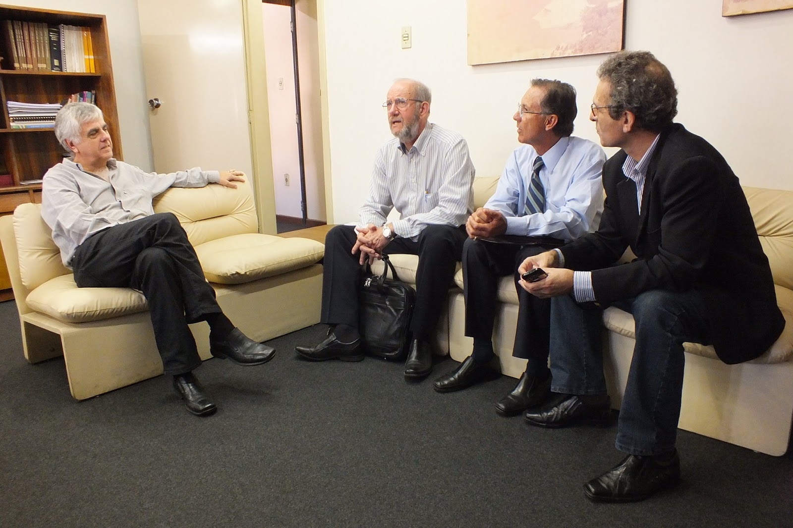 20130425_Hidrovia Ibicuí-JacuíA potencialidade da criação da Hidrovia Ibicuí-Jacuí, na região Central do Estado, poderá ser apontada pelo Estudo de Viabilidade Técnica e Ambiental (EVTA) que foi contratado pelo governo federal e que está sendo realizado nas bacias hidrográficas gaúchas. A informação foi confirmada, nesta quinta (25), durante audiência do presidente da Agência de Desenvolvimento de Santa Maria (Adesm), Vilson Serro, do empresário santa-mariense Augusto Mânica, e do chefe de gabinete do deputado Valdeci Oliveira, Genil Pavan, com o presidente da Administração das Hidrovias do Sul (AHSUL), José Luiz de Azambuja. No encontro, a comitiva santa-mariense defendeu a criação da hidrovia, que interligaria os municípios de Cachoeira do Sul a Cacequi, como alternativa de desenvolvimento para o Estado. “Com esta ligação, poderíamos transportar cargas desde Uruguaiana até o Porto de Rio Grande com custos inferiores e sem congestionar as estradas”, explicou Serro.