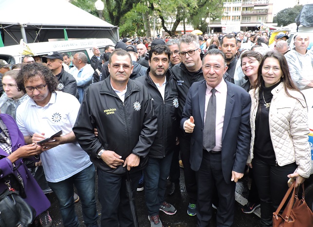 Policiais civis e demais categorias de servidores da segurança pública realizaram, no início da tarde desta terça-feira (17), em Porto Alegre, uma marcha em defesa da valorização profissional, pela nomeação dos aprovados em concurso público e contra o atraso dos salários e a reforma da previdência. “A categoria conta com nosso total apoio nessa luta, que é a de toda a sociedade gaúcha. Não há receita ou fórmula que venha a dar certo que não leve em conta o investimento, o respeito e a valorização dos trabalhadores. Ampliação do efetivo, investimento em inteligência e, principalmente, salários compatíveis com a função e com pagamento em dia devem fazer parte de qualquer plano de segurança pública digno”, declarou o deputado Valdeci Oliveira, em crítica direta ao que vem sendo implementado pelo governador Eduardo Leite (PSDB) desde janeiro, quando tomou posse.
