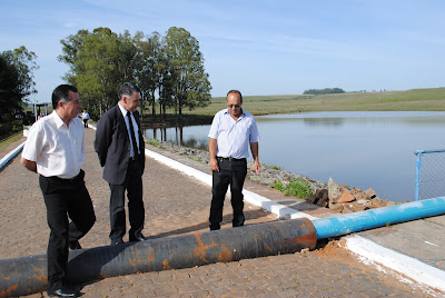 Vítima de uma forte estiagem neste ano, que comprometeu até o reservatório da barragem local, o município de Santiago contará com R$ 20 milhões para fortalecer o abastecimento de água e o saneamento básico. Nesta quarta (7), o presidente da Companhia Riograndense de Saneamento (Corsan), Arnaldo Dutra, foi a Santiago e, ao lado do prefeito Júlio Ruivo e do deputado estadual Valdeci Oliveira (PT), assinou o edital de licitação para ampliação da Estação de Tratamento de Água (ETA) e da complementação da adutora de água bruta do município. Com as obras, a ETA terá capacidade para tratar 200 litros de água por segundo, em vez dos atuais 60 litros por segundo. Só a ampliação representa um investimento de R$ 7 milhões, garantidos através do Programa de Aceleração do Crescimento (PAC) do governo federal.
