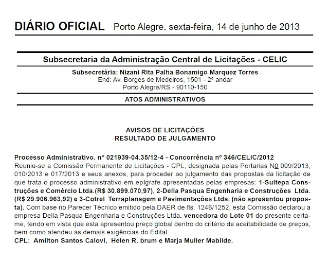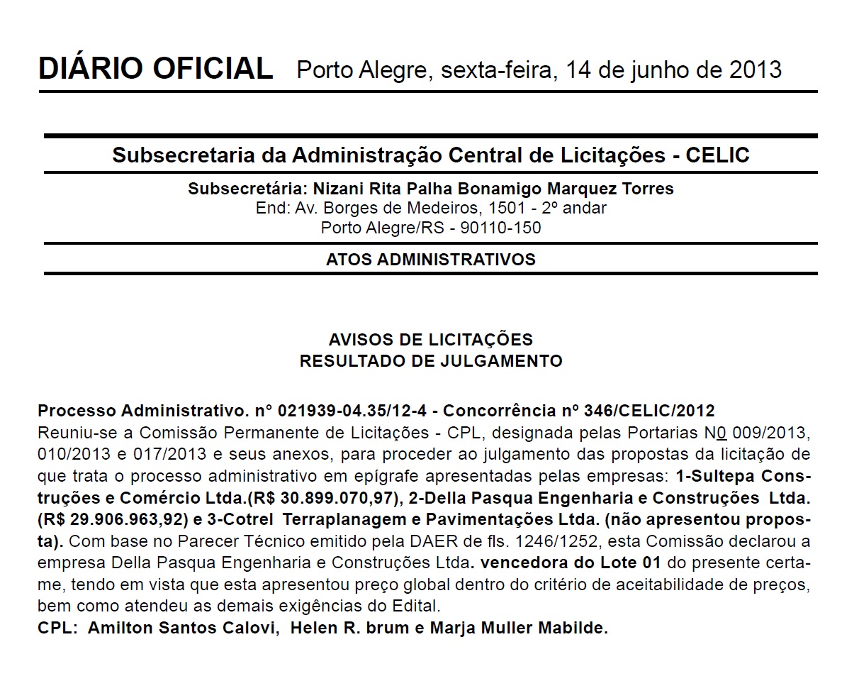 Está publicado no Diário Oficial do Estado o resultado do processo de licitação da obra de duplicação da ERS-509, a Faixa Velha de Camobi. Empresa Della Pasqua foi a vencedora. Se não houver recurso, o começo da obra está muito próximo.