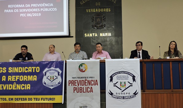 Os impactos da reforma da previdência para os servidores públicos estaduais foram discutidos na audiência pública promovida pela Frente Parlamentar de Apoio à Previdência Pública da Assembleia Legislativa, a qual aconteceu na noite de sexta-feira (28/6), na Câmara de Vereadores de Santa Maria. A atividade foi coordenada pelo deputado estadual Valdeci Oliveira e contou com painéis apresentados pelo advogado Amarildo Martins e pelas advogadas Noemi Santos e Marina Callegaro, todos com atuação na área previdenciária.
