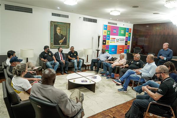 No final da tarde desta terça-feira (22), o presidente da Assembleia Legislativa, Valdeci Oliveira (PT), recebeu dirigentes de diversas entidades que representam servidores da Polícia Civil, IGP, Susepe, entre outras categorias. A principal reivindicação apresentada foi para que o chefe do Legislativo gaúcho intermedeie, junto ao governo do Estado, a criação de uma mesa de negociação sobre a reposição salarial dos trabalhadores da segurança pública, que estão com salários congelados há bastante tempo. “Precisamos da inferência do Parlamento para que seja aberto um canal de negociação sobre a reposição salarial. Estamos com muita saudade de poder negociar e, na base do diálogo, construir avanços”, afirmou Isaac Ortiz, do Sindicato dos Agentes do RS (UGEIRM Sindicato).
