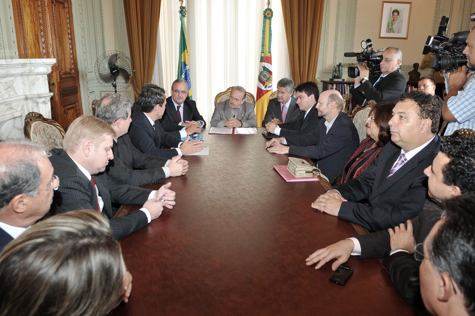 O prefeito Junaro Rambo, o presidente da Assembleia, Pedro Westphalen, e a vereadora Xuxu também prestigiaram o ato hoje no Palácio Piratini.