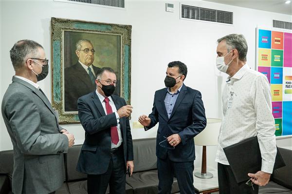 O presidente da Frente Parlamentar Brasil-China no RS, deputado estadual Jeferson Fernandes (PT), o presidente da Câmara de Comércio Brasil-China Sul, Paulo Tigre, e o empresário Jorge Burmann, da Burmann Alimentos, estiveram reunidos com o presidente do Legislativo gaúcho, deputado Valdeci Oliveira (PT). O encontro, que ocorreu na manhã desta quarta-feira (23), foi proposto por Jeferson para selar uma parceria entre o grupo, que busca a ampliação dos intercâmbios culturais e econômicos entre RS e China, e a nova presidência da Casa, ocupada pelo petista desde janeiro passado.
