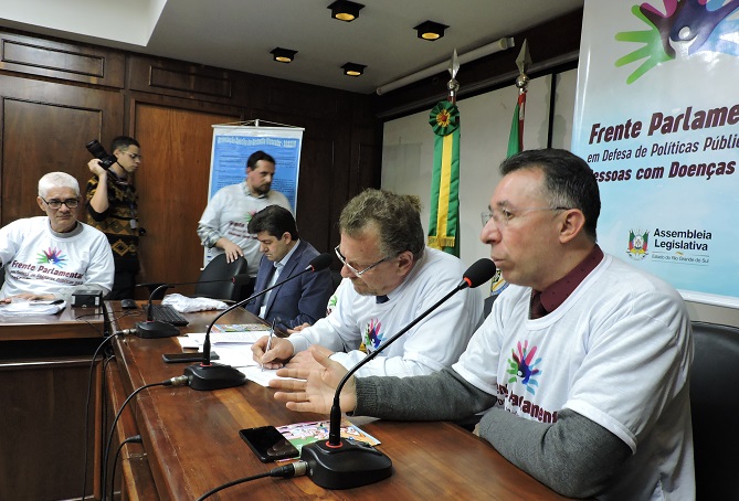 Os gaúchos e gaúchas portadores de enfermidades consideradas raras têm agora um importante aliado no debate que inclui a pesquisa, diagnóstico, atendimento e fornecimento de medicamentos especiais. Na manhã desta quinta-feira, 22, foi realizado na Assembleia Legislativa o ato de lançamento da Frente Parlamentar em defesa de políticas públicas para pessoas com doenças raras. A coordenação do colegiado, que será ocupada na forma de rodízio, neste primeiro momento será realizada pelo deputado Fernando Mainardi (PT), proponente da Frente. Valdeci Oliveira e Sofia Cavedon, ambos também do PT, e Luciana Genro (Psol) deverão presidir os trabalhos de forma intercalada até o final da atual legislatura. “Estamos aqui porque esta tarefa não diz respeito apenas a este ou aquele governo, deste ou daquele parlamentar, deste ou daquele partido. Esta tem de ser uma causa da sociedade. Não devemos apenas levantar o tema, mas pressionar pela sua resolução”, afirmou Valdeci, cujo mandato tem envolvimento direto com a causa a partir de relações estabelecidas com a Associação de Portadores de Esclerose Múltipla de Santa Maria (APEMSMAR), Associação Gaúcha de Doenças Inflamatórias Intestinais (AGADII), Associação Gaúcha de Distrofia Muscular (AGADIM) e Núcleo de Defesa da Saúde da Defensoria Pública do Estado do Rio Grande do Sul (NUDS – DPE/RS), entre outras.