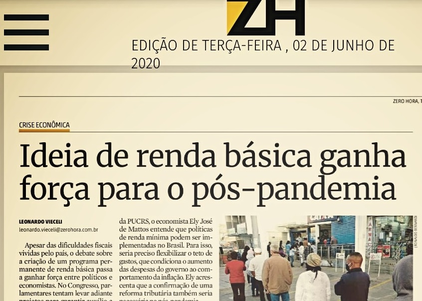 Recomendamos a leitura da página 10 da Zero Hora desta terça-feira (2/6 – link abaixo), que traz uma ampla matéria sobre a alternativa da Renda Básica como forma de promoção da inclusão social e de enfrentamento à crise da Covid-19. N