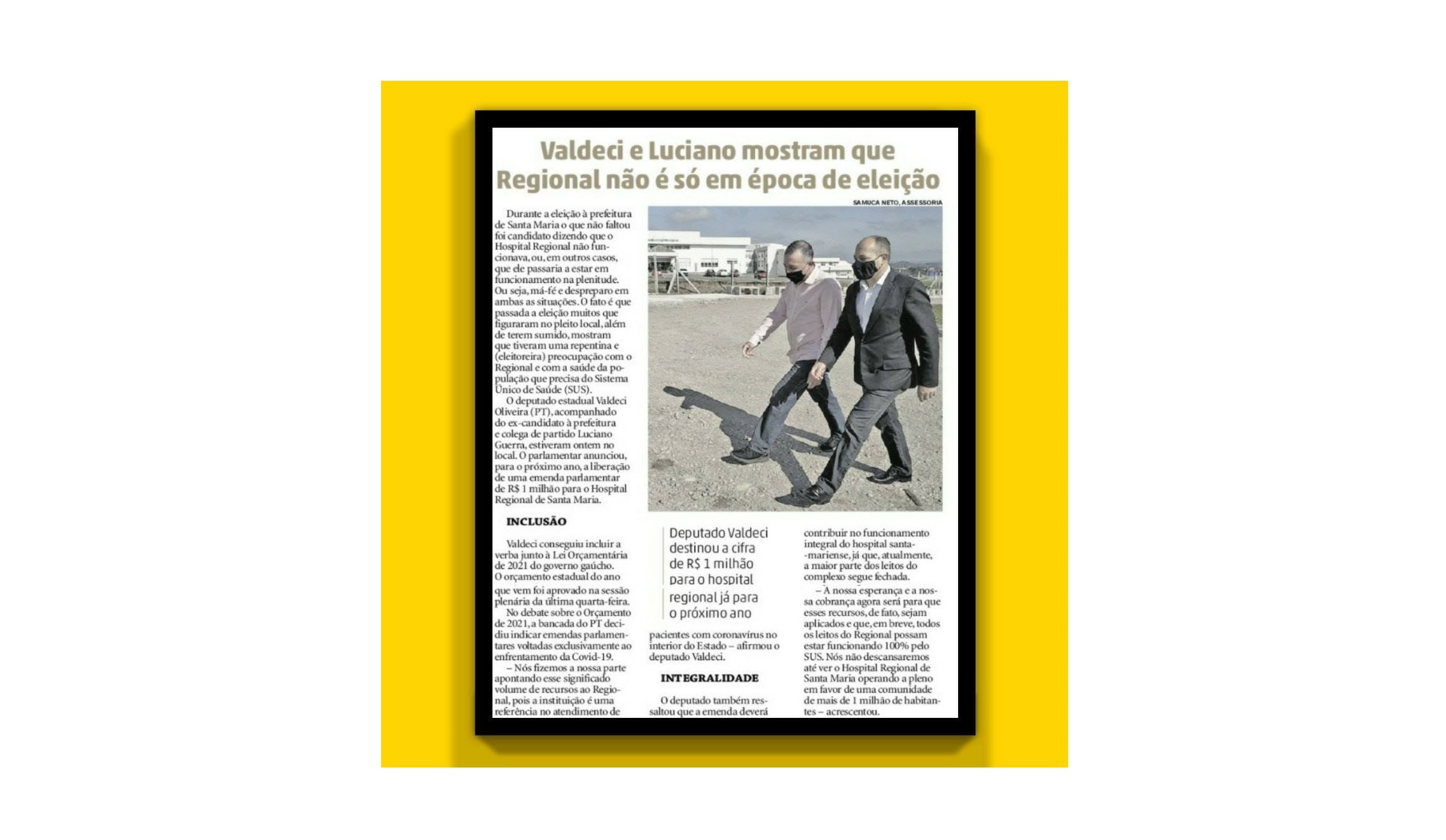 Confira abaixo o registro feito pelo Diário de Santa Maria acerca da emenda parlamentar de R$ 1 milhão que o nosso mandato encaminhou ao Regional e que foi aprovada dentro do Orçamento do Estado de 2021.