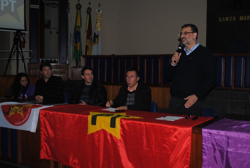 Pré-candidato a presidência do PT Estadual, o prefeito de Canoas, Jairo Jorge, 50 anos, realizou agendas, neste domingo (7), em Santiago, São Pedro do Sul e Santa Maria. Dentro do Diálogos Petistas – evento promovido pelas correntes petistas Socialismo 21, Unidade na Luta Democrática e Movimento PT – Jairo se reuniu com militantes, lideranças, vereadores e prefeitos. Em Santa Maria, o pré-candidato foi recebido na Câmara de Vereadores pelo deputado estadual Valdeci Oliveira, pelo presidente do PT municipal, Valdir Oliveira, pelo vereador Luciano Guerra, e pelos prefeitos de Faxinal do Soturno, Volnei Savegnago, e de Pinhal Grande, Selmar Durigon. Além de apresentar um vídeo sobre a sua trajetória na política, Jairo Jorge detalhou as 13 principais propostas da sua pré-candidatura, e ouviu os militantes presentes e analisou as manifestações populares recentes. Entre as diretrizes centrais apresentadas, estão a interiorização do partido, a ampliação das ações de formação de gestores e de lideranças, a reaproximação dos movimentos sociais e a defesa dos governos Tarso e Dilma. “Temos de ter um partido que dialoga com a sociedade e com os movimentos sociais. Temos de fazer o novo de novo”, afirmou Jairo em Santa Maria.