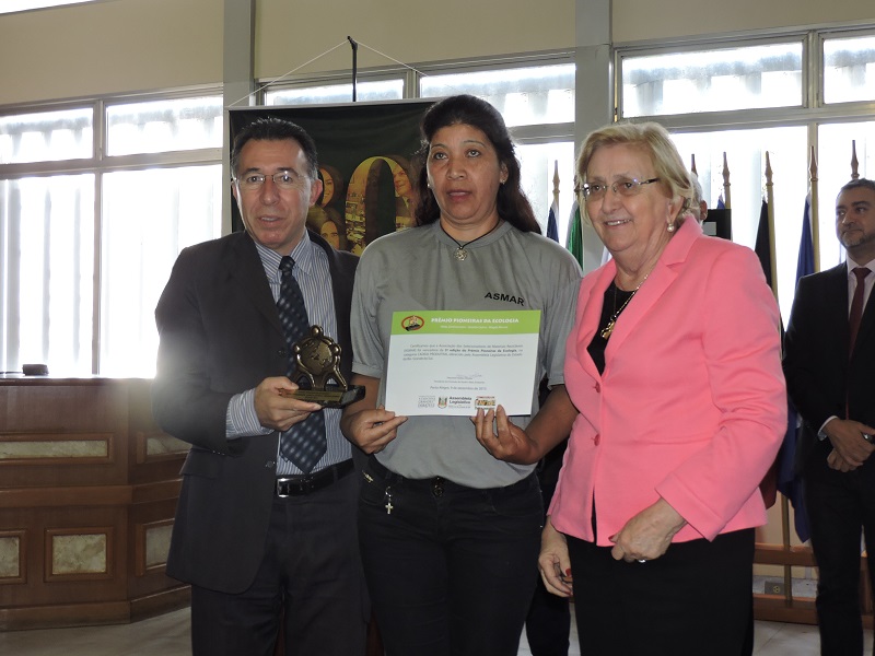Já a Empresa Brasileira de Correios e Telégrafos foi escolhida na categoria Cadeia Produtiva, em função do Programa SocioAmbiental, desenvolvido desde 2008. O programa promove a coleta seletiva solidária, a destinação de uniformes para reciclagem, de sucatas eletrônicas para comunidades em situação de vulnerabilidade e de pallets para instituições sociais entre outras ações. (Texto:  Tiago Machado (MTE 9415) e Olga Arnt (MTE 14323) – foto: Tiago Machado – imagem da entrega do Prêmio Pioneiras da Ecologia 2015)