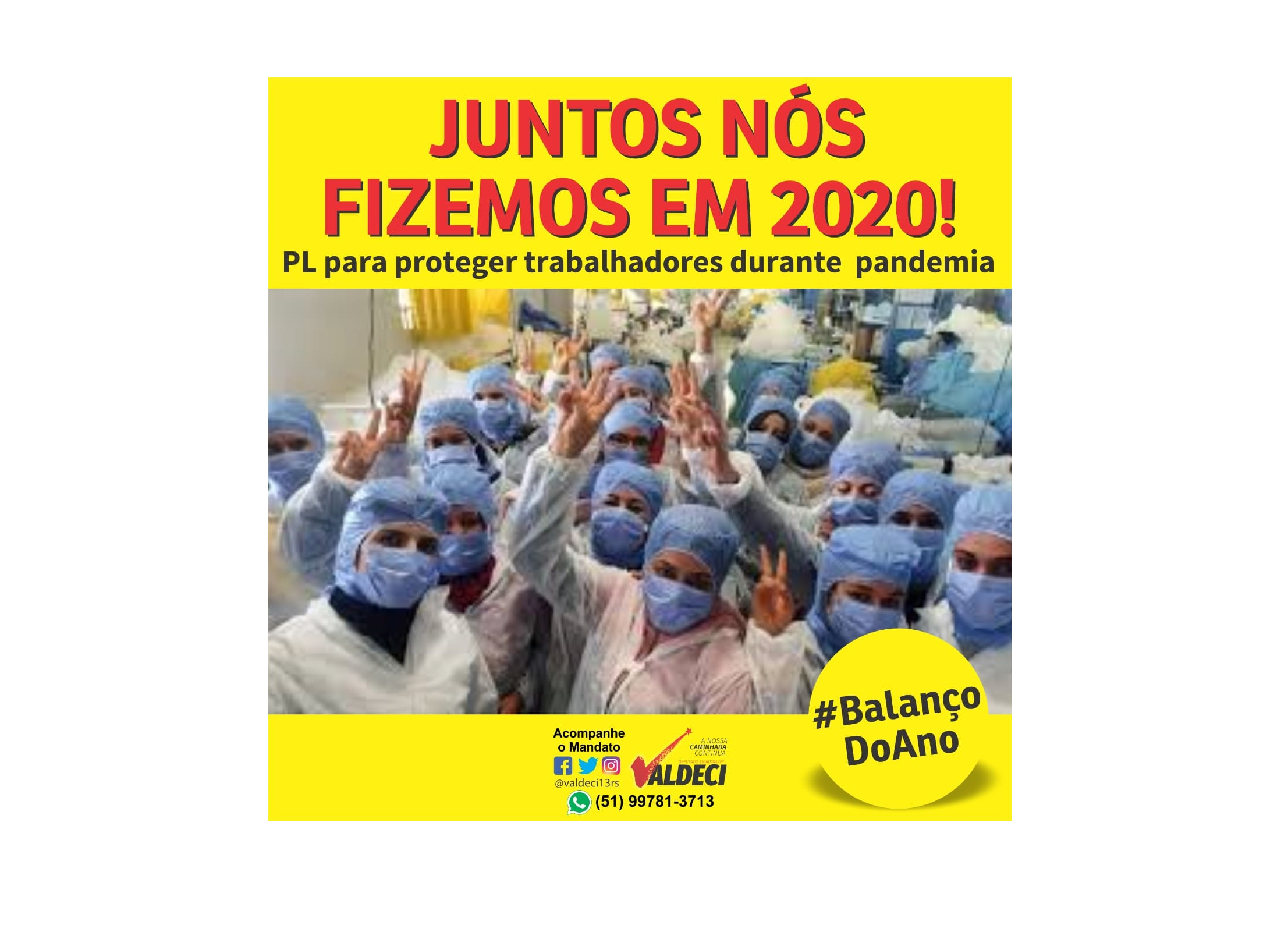 Em 2020, o nosso mandato protocolou um projeto de lei para assegurar a destinação obrigatória de equipamentos de proteção (como máscaras, luvas e antissépticos) para os trabalhadores e trabalhadoras durante a pandemia.