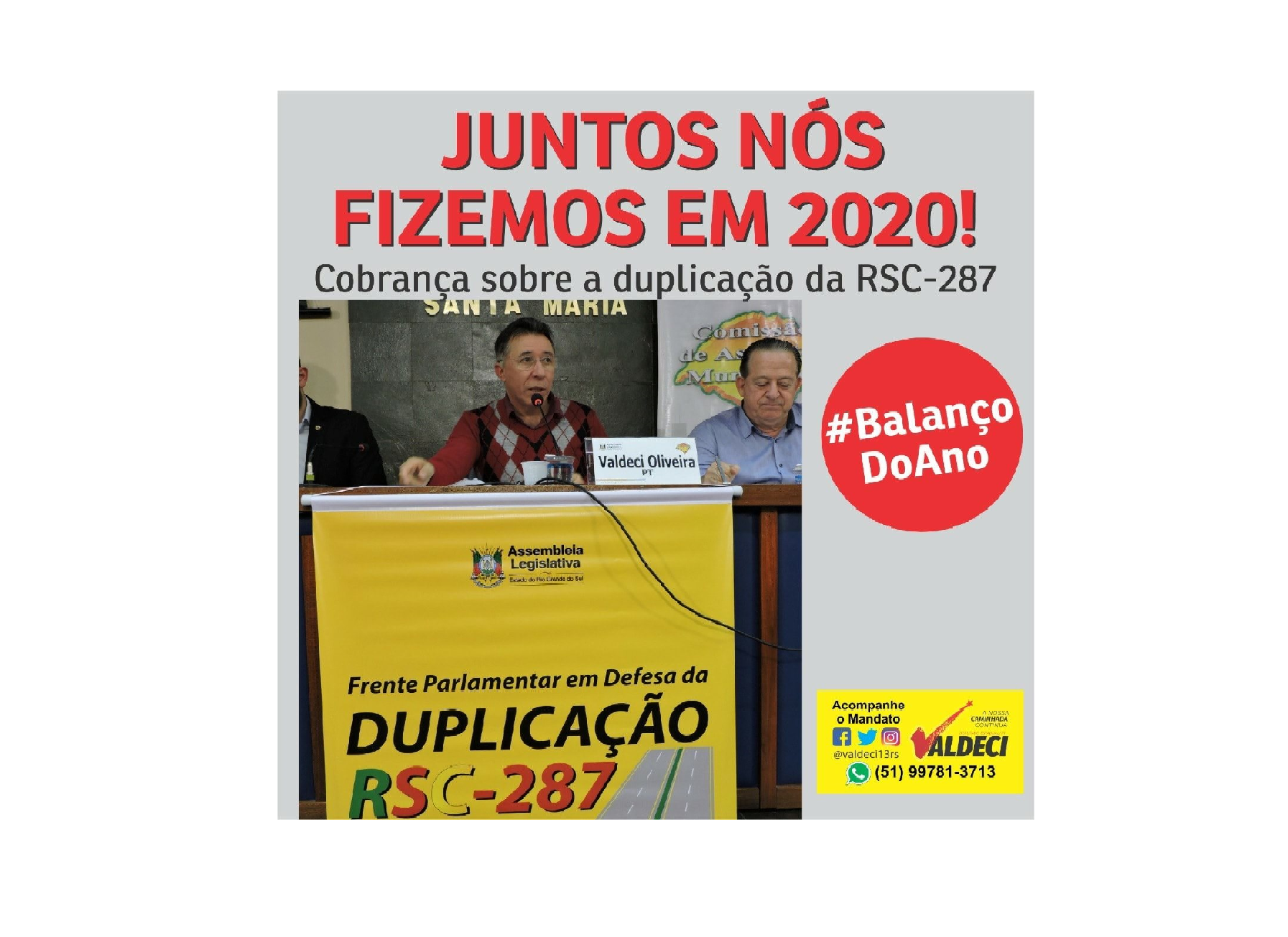 Outra luta importante do nosso mandato na área da infraestrutura, no ano de 2020, foi a mobilização pela duplicação da RSC-287, estrada que liga a Região Central à Região Metropolitana. Inclusive, lançamos uma Frente Parlamentar na Assembleia para fortalecer o movimento.