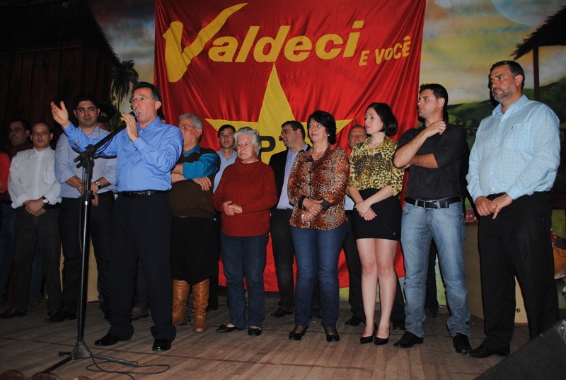A comemoração dos 56 anos do deputado estadual Valdeci Oliveira (PT) – ocorrida na noite de sexta (6), no CPF Piá do Sul, em Santa Maria – se transformou em um ponto de encontro de lideranças petistas da cidade e do Estado. O deputado federal Paulo Pimenta, o secretário estadual de Direitos Humanos, Fabiano Pereira, o secretário estadual de Desenvolvimento Rural, Ivar Pavan, o prefeito de Dilermando de Aguiar, Jaime Lima, os vereadores Daniel Diniz, Jorge Trindade e Luciano Guerra, entre outras autoridades, marcaram presença na confraternização. Depois de agradecer a presença das mais de 500 pessoas presentes, Valdeci pautou a política estadual e nacional e pediu empenho aos militantes para defender os governos Tarso Genro e Dilma Rousseff. “As mudanças em curso no Estado e no Brasil não podem ser interrompidas. Está nas nossas mãos conduzir a continuidade dos dois projetos e a manutenção de um conjunto de políticas que priorizam a inclusão social”, pediu o líder do governo na Assembleia Legislativa.