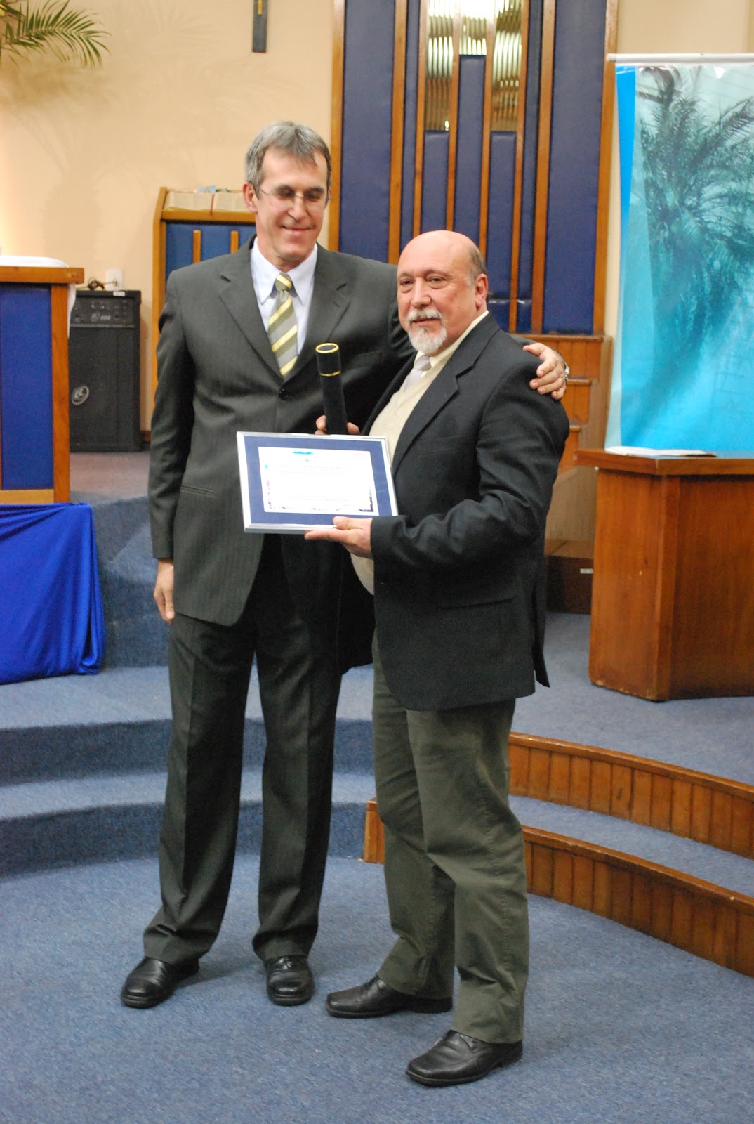 Impossibilitado por compromissos na agenda de comparecer à sessão solene da Câmara Municipal de Santa Maria, na quinta (4), que outorgou títulos de benemerência e de vereador emérito a pessoas que prestaram serviços à comunidade local, o deputado Valdeci Oliveira (PT) parabenizou o Legislativo Municipal pela iniciativa e pela escolha dos homenageados. Neste ano, a Câmara concedeu título de Cidadão Benemérito ao médico Roberto Lemos, de Cidadão Santa- Mariense ao empresário Valdemar Roveda, de Cidadão Honra ao Mérito à professora Alcione Flores do Amaral e de vereador emérito ao jornalista e ex-vereador Luiz Roberto Simon do Monte, o Beto São Pedro. “Efetivamente todos os homenageados colaboraram para Santa Maria e tem muitos contribuições prestadas à comunidade”, ressalta o deputado. Companheiro de partido e amigo de Beto (na foto recebendo título do vereador Werner Rempel), Valdeci enviou uma mensagem ao militante político pela deferência recebida, que está reproduzida abaixo. Ao amigo Beto
