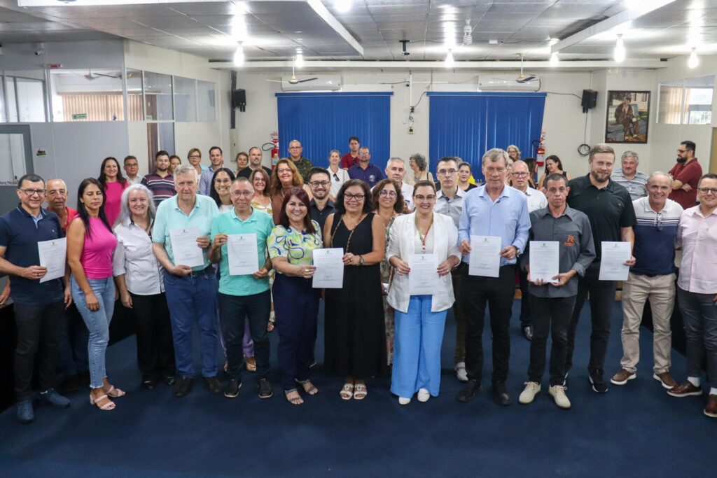 Ao lado de autoridades e lideranças políticas e sociais, o deputado Valdeci Oliveira, juntamente com a reitora do Instituto Federal Farroupilha, Nídia Heringer, participou na sexta-feira, 17/1, de um momento histórico: o ato de assinatura do início das obras do novo campus do IFFar em São Luiz Gonzaga. A atividade ocorreu no Plenário da Câmara Municipal. “Isso é fruto de um grande trabalho da comunidade. Tive a felicidade de propor e coordenar aquela audiência pública histórica em 2023, que reforçou muito a mobilização pelo Instituto Federal Farroupilha. Serão R$ 15 milhões de investimentos em obras aqui, o que vai mudar a realidade da cidade e da região. Isso só está acontecendo porque temos um presidente, chamado Luiz Inácio Lula da Silva, absolutamente comprometido com a educação de qualidade. O IFFar é uma realidade na terra missioneira”, afirmou Valdeci. O campus será construído em uma área doada pelo município, no Parque Centenário. Já as licitações para as licitações foram autorizadas no segundo semestre do ano passado.