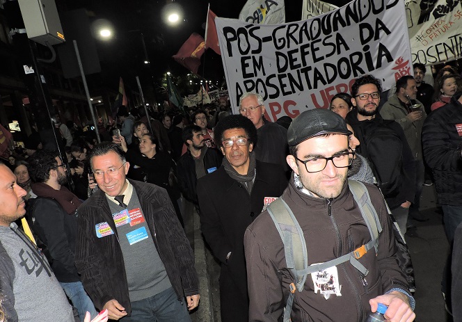 O deputado estadual Valdeci Oliveira (PT) marcou presença na mobilização realizada na capital gaúcha e se colocou ao lado de professores, estudantes, gestores de universidades e mães e pais de alunos. “A educação pública, de qualidade, gratuita e de acesso universal será sempre defendida por nós. Não aceitamos a retirada de recursos que são fundamentais para o funcionamento de nossas instituições e para garantir que os filhos e filhas dos pobres também tenham o direito de um dia serem mestres e mestras ou doutores e doutoras”, disse o parlamentar, lembrando que, nos últimos dias, o governo federal bloqueou mais R$ 348 milhões do programa de livros didáticos. “Parece que a maldade não tem fim. Enquanto isso, a gestão Bolsonaro perdoa dívida de ruralistas, distribui milhões em emendas para cooptar parlamentares e promete reduzir o imposto de renda dos mais ricos. Um verdadeiro escárnio”, avaliou.