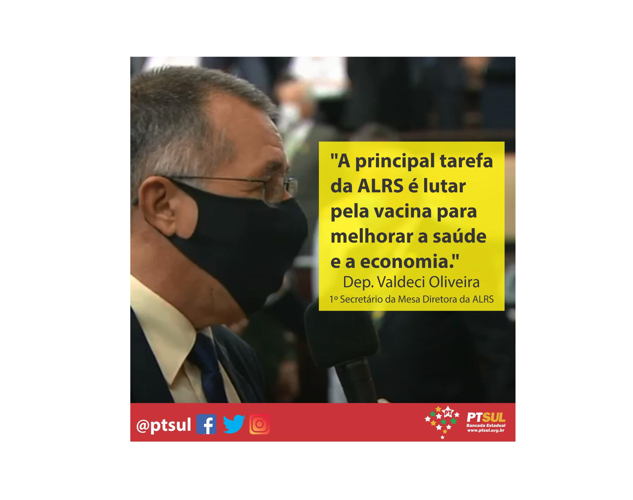 Primeiro Secretário: Dep. Valdeci Oliveira (PT)